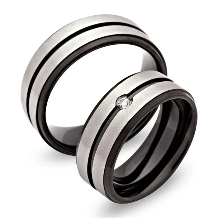 ElĂ©gantes alliances de mariage en acier inoxydable d’une largeur de 8mm.