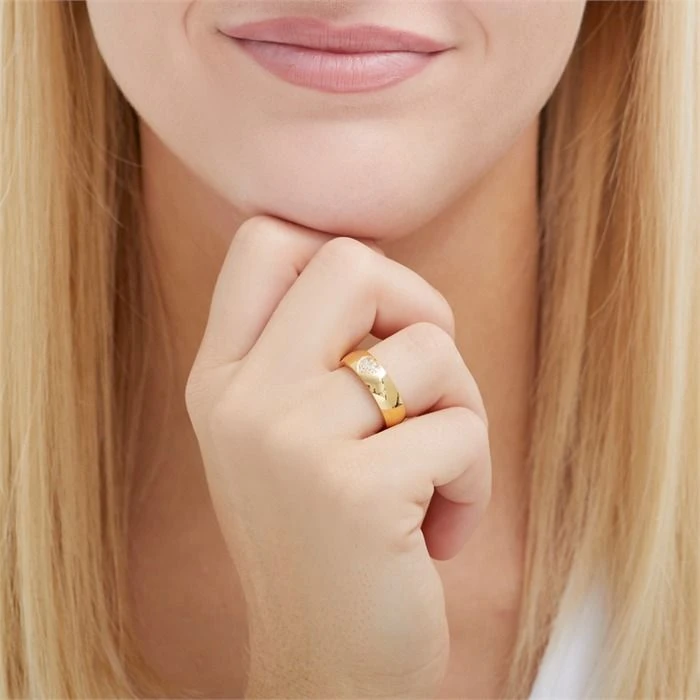 Modernes et romantiques alliances de mariage en acier doré inoxydable, personnalisables à l’intérieur et à l’extérieur des deux bagues. La bague femme est décorée d’un cœur orné de plusieurs zirconias blancs scintillants. Les deux anneaux sont bombés, pour un plus grand confort. Inscrivez le texte qui vous plaira, et bénéficiez de la gravure diamant offerte. Les grands amoureux adoreront ce modèle fait pour eux.