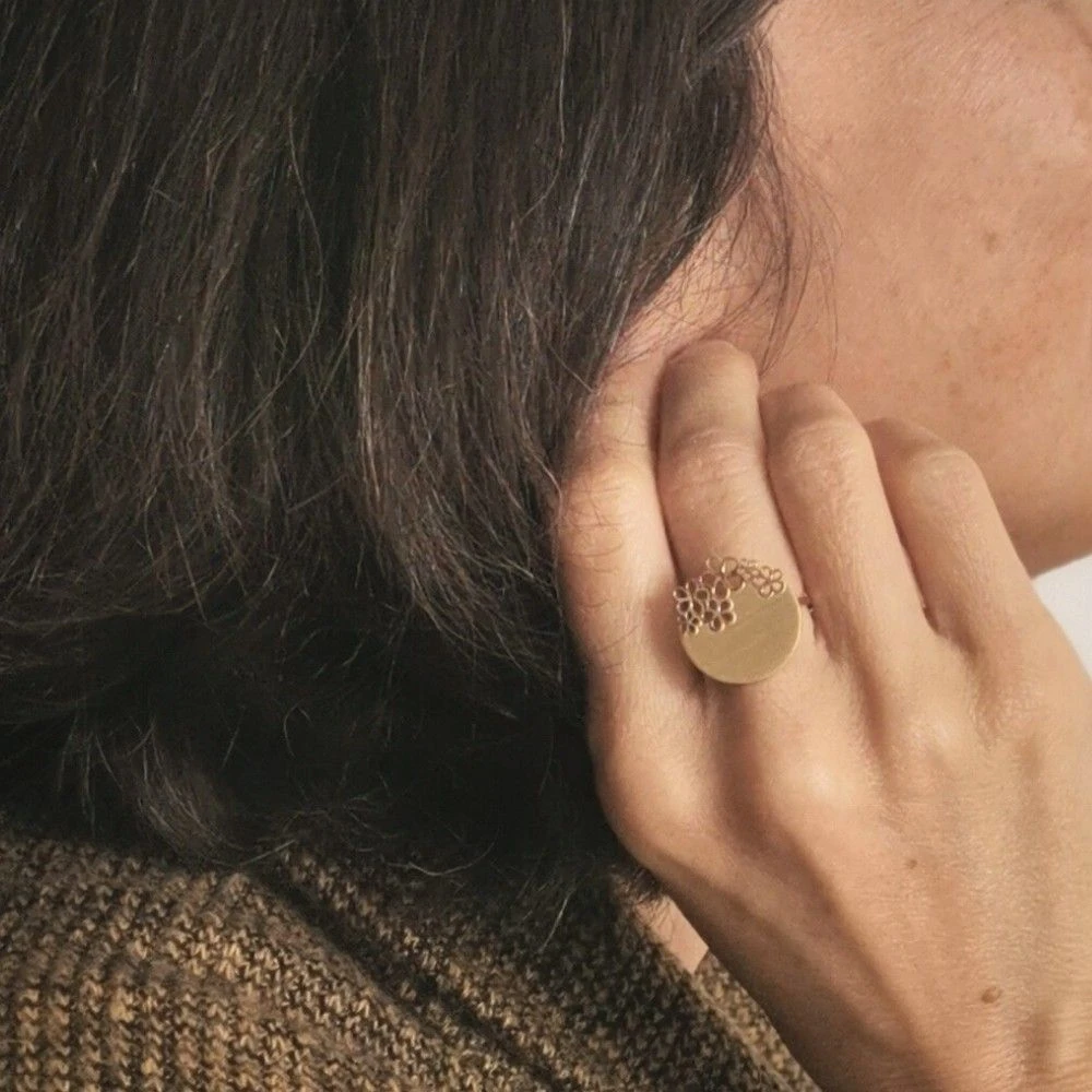 Jolie et originale bague dorĂ©e en acier brossĂ© inoxydable, dĂ©corĂ©e par des motifs fleurs. Elle est personnalisable au recto avec la gravure offerte. La bague est rĂ©glable ce qui prĂ©sente un bel avantage, elle s’adapte Ă toutes les tailles. C’est un cadeau idĂ©al pour faire plaisir.