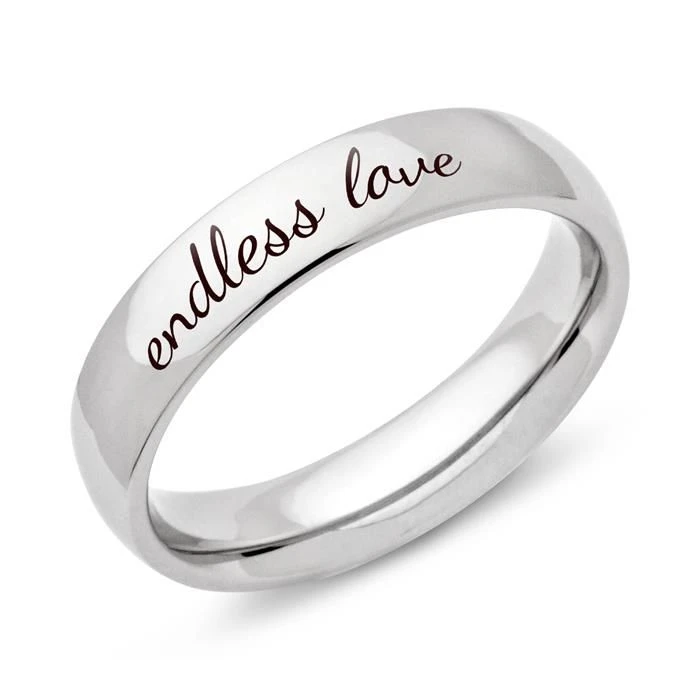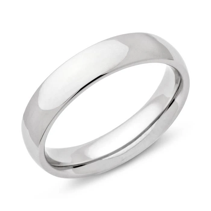 Moderne bague en acier inoxydable. La bague d’une largeur de 5mm est bombĂ©e Ă l’intĂ©rieur pour un plus grand confort.