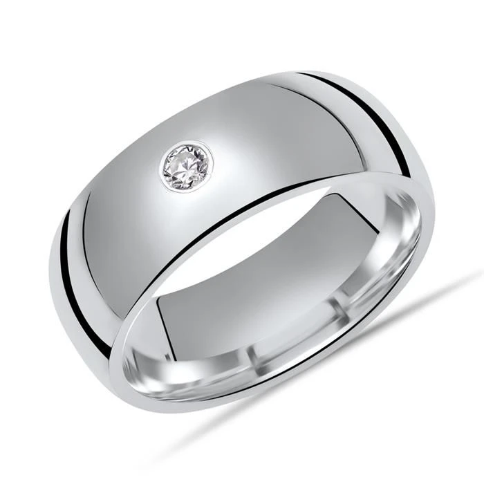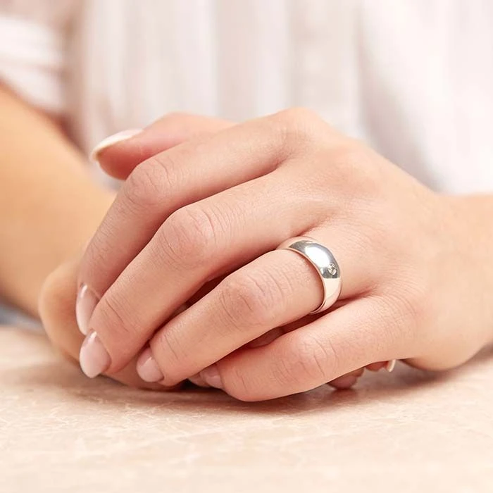 ElĂ©gante bague en argent massif 925 avec un zirkonium. La bague d’une largeur de 7mm est bombĂ©e Ă l’intĂ©rieur pour un plus grand confort.