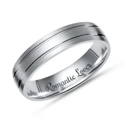 ElĂ©gante bague en argent massif 925. La bague d’une largeur de 5mm est bombĂ©e Ă l’intĂ©rieur pour un plus grand confort. Personnalisez-la avec une date, un prĂ©nom ou encore un symbole grâce Ă la première gravure diamant offerte.