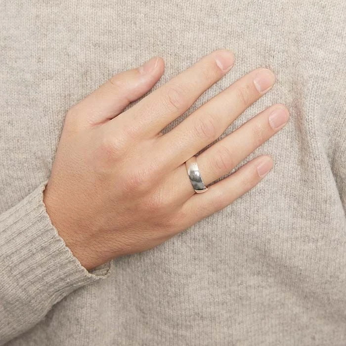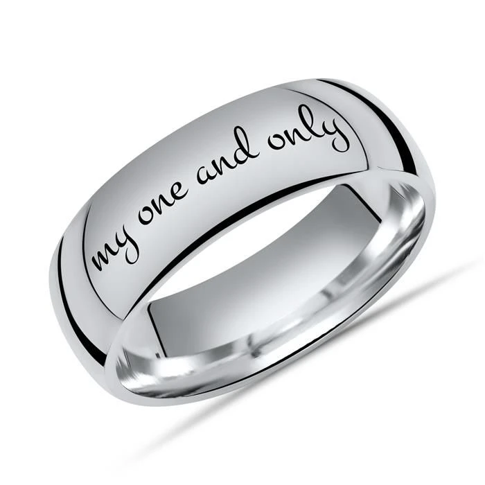 ElĂ©gante bague en argent massif 925. La bague d’une largeur de 7mm est bombĂ©e Ă l’intĂ©rieur pour un plus grand confort. Personnalisez la avec une date et vos prĂ©noms par exemple, avec la première gravure diamant offerte.