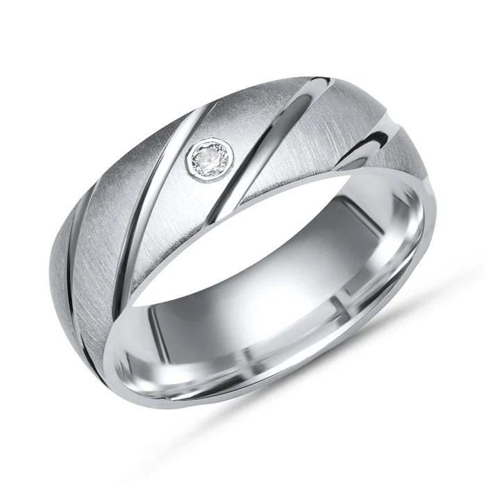ElĂ©gante bague en argent massif 925. La bague d’une largeur de 6mm est bombĂ©e Ă l’intĂ©rieur pour un plus grand confort. DĂ©corĂ©e d’un joli zirconium pour plus de fĂ©minitĂ©. Profitez de la première gravure diamant offerte avec un nom, une date, ou encore un symbole.