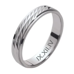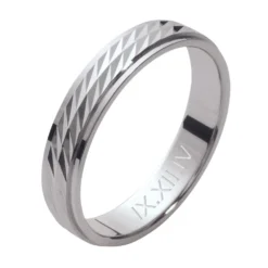 Cette bague en argent rhodié est un bijou élégant et raffiné, qui convient aussi bien aux hommes qu’aux femmes. Ses finitions ciselées géométriques sur le contour lui offrent une touche d’éclat. La bague est également polie pour un rendu brillant et éclatant. Cet anneau en argent est un accessoire idéal pour compléter votre tenue. Elle peut aussi être personnalisée selon vos envies en y ajoutant une gravure à l’intérieur, la gravure diamant est offerte.