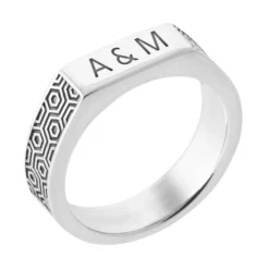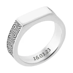 Cette chevalière fine est un bijou chic et tendance qui habille votre doigt avec classe. Ses motifs géométriques sur le contour de l’anneau affirment sa singularité. En argent rhodié, cette chevalière est un accessoire incontournable pour compléter votre tenue. Ajoutez une gravure pour la rendre unique.