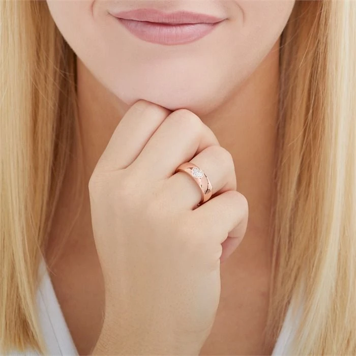 Superbe et romantique bague coeur en acier rosée inoxydable, personnalisable à l’extérieur et à l’intérieur avec une gravure laser ou diamant offerte. Un joli motif coeur aux multiples zirconias blancs scintillants orne la bague. Un vrai coup de coeur pour toutes les femmes, mais surtout pour les grandes amoureuses. L’idée d’un joli cadeau de St Valentin réussi est à votre portée messieurs. Profitez de la première gravure diamant offerte avec un nom, une date, ou encore un symbole.