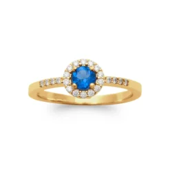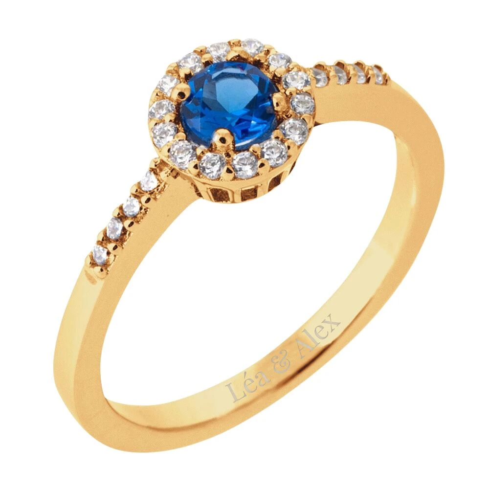 Cette bague est ornée d’un solitaire en oxyde de zirconium de couleur bleue entouré de plusieurs petits zirconiums, qui sont des pierres synthétiques imitant le diamant. Elle est fabriquée en plaqué or, 750 millièmes 3 microns qui est un métal précieux qui résiste à l’oxydation et à la ternissure. Elle peut également être personnalisée avec une gravure de votre choix, pour la rendre unique et originale. Le solitaire est une pierre taillée en forme de rond, qui capte la lumière et la reflète avec éclat. La bague de fiançailles est un bijou qui exprime la pureté et la fidélité des sentiments, et qui ravit celle qui la reçoit.