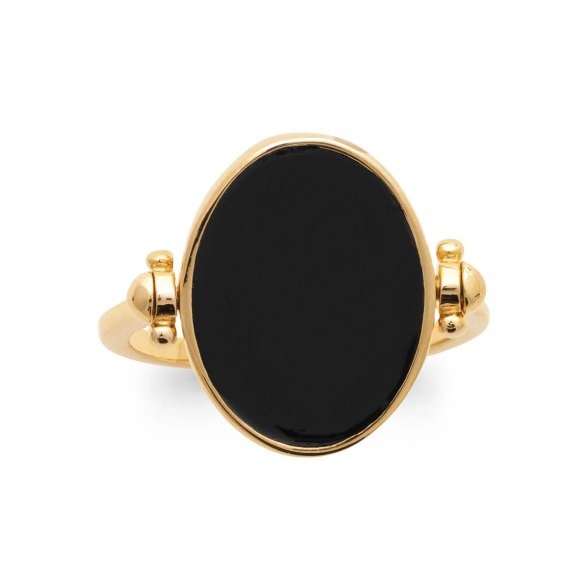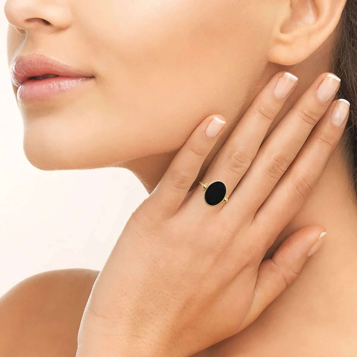 Bague Plaqué Or Laque Noir Personnalisée – 2804