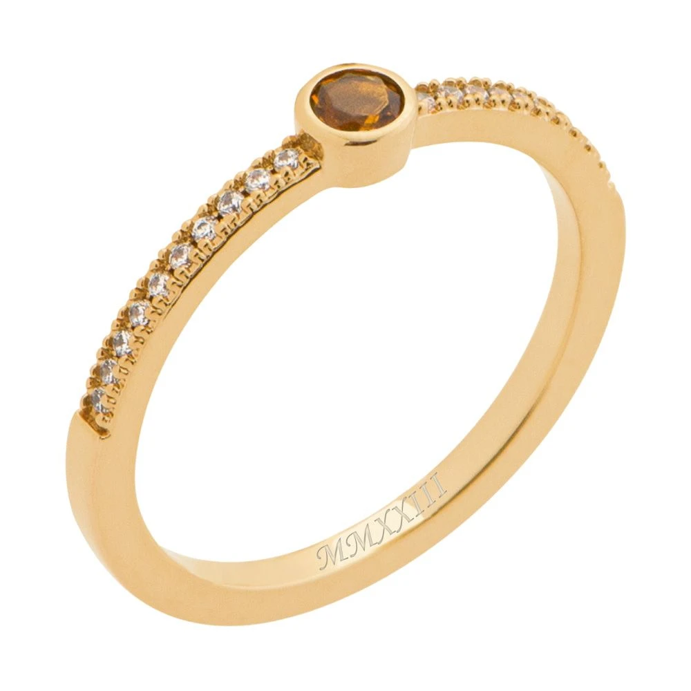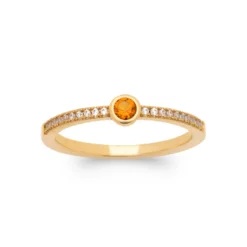 Des petites pierres en oxydes de zirconium agrémentent la partie supérieure de l’anneau afin de mettre en valeur le solitaire en oxyde de zirconium de couleur orange. Cette bague est plaqué or 750 millièmes 3 microns. A offrir pour une déclaration d’amour ou pour fêter un anniversaire de mariage ou de rencontre. A graver selon vos envies avec la gravure de votre choix avec la première gravure diamant offerte !