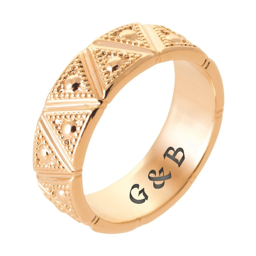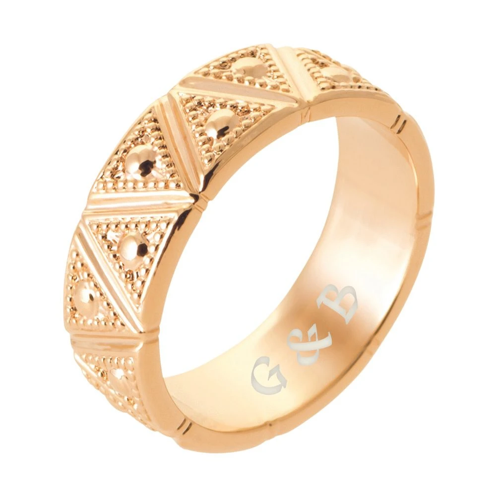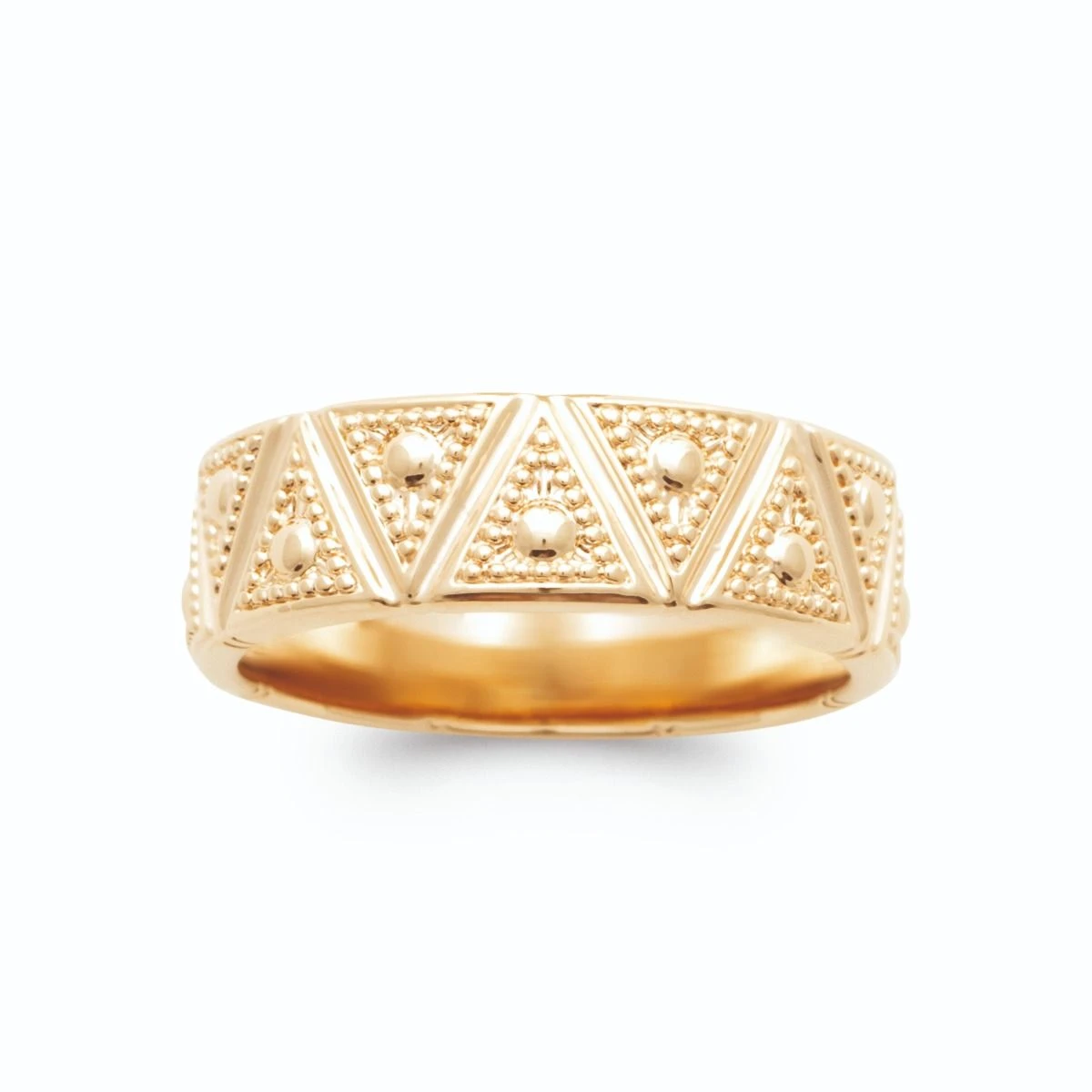 Cette bague femme plaquée or 750 millièmes 3 microns est un bijou original et tendance qui mettra en valeur votre style. Elle est ornée de motifs triangulaires qui lui donnent un aspect géométrique et moderne avec une touche exotique. Elle peut aussi être personnalisée selon vos envies en y ajoutant une gravure à l’intérieur, la gravure diamant est offerte.