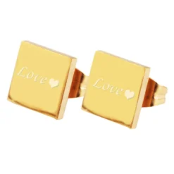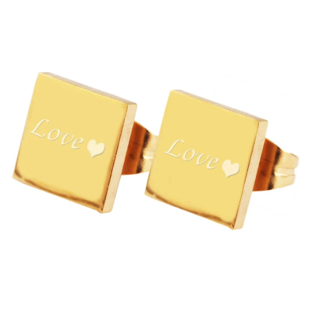 Jolies et originales boucles d’oreilles forme carrĂ© en acier dorĂ© inoxydable. Elles peuvent ĂŞtre personnalisables au recto en 6 caractères. La gravure diamant est offerte. C’est un cadeau très apprĂ©ciĂ© des femmes actives.