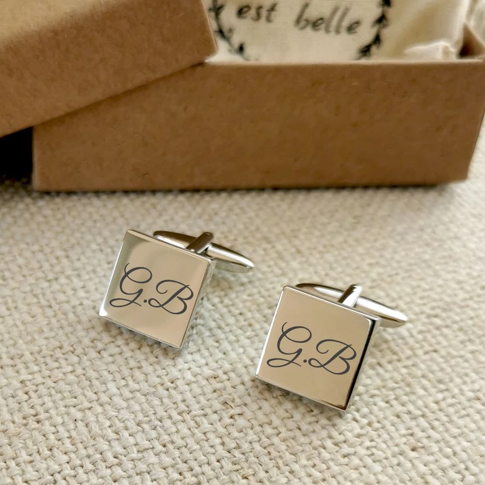 Ces boutons de manchette au design sobre et minimaliste pourront être utilisés avec la plupart de vos chemises et vestes de costume. Ces boutons de manchettes sont de forme carrée et arborent une magnifique finition polie. A personnaliser avec la gravure de votre choix.