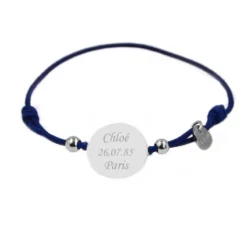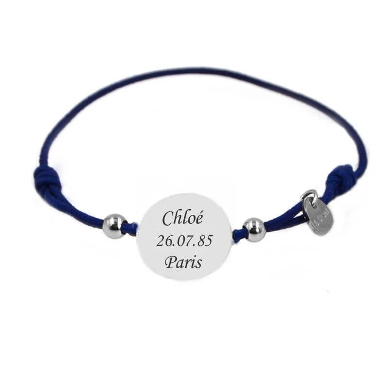 Très sympa bracelet cordon Ă©lastique bleu avec sa plaque de gravure en acier inoxydable dĂ©corĂ©e d’une ancre marine. Grâce Ă ses deux nĹ“uds coulissants de part et d’autre de la plaque de gravure, la taille est rĂ©glable. Personnalisable au verso avec une gravure diamant ou laser au choix, c’est un cadeau parfait Ă offrir pour une jeune femme ou un enfant qui aime la mer.