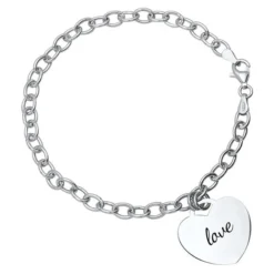 Joli bracelet en argent 925 poli et rhodiĂ© avec sa breloque en forme de coeur intĂ©grĂ©e Ă une maille forçat. Le rhodiage protègera votre bijou du ternissement. Le bracelet est dotĂ© d’un fermoir mousqueton pour un plus grand confort. Profitez de la première gravure diamant gratuite avec un nom, une date, ou encore un symbole. C’est parfait comme cadeau Ă offrir ou pour se faire plaisir.