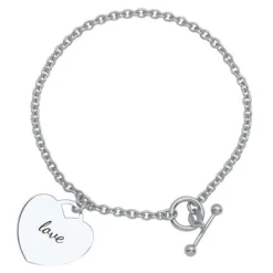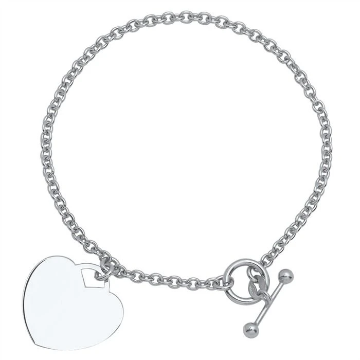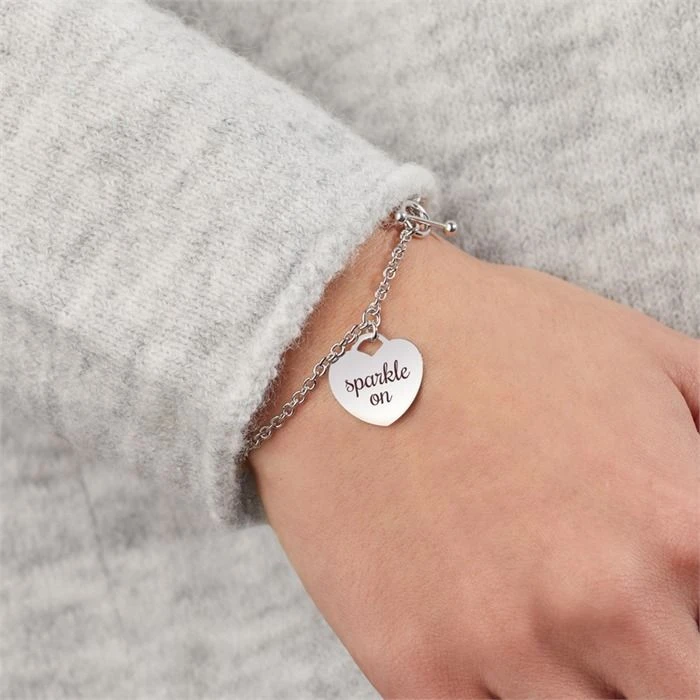 ElĂ©gant bracelet en argent 925 poli et rhodiĂ© avec une breloque en forme de coeur intĂ©grĂ©e Ă la maille jaseron. Grâce au rhodiage, votre bijou sera protĂ©gĂ© du ternissement. Le bracelet est dotĂ© d’un fermoir Ă bascule pour plus d’esthĂ©tisme. Profitez de la première gravure diamant gratuite avec un nom, une date, ou encore un symbole. C’est parfait comme cadeau Ă offrir ou pour se faire plaisir.