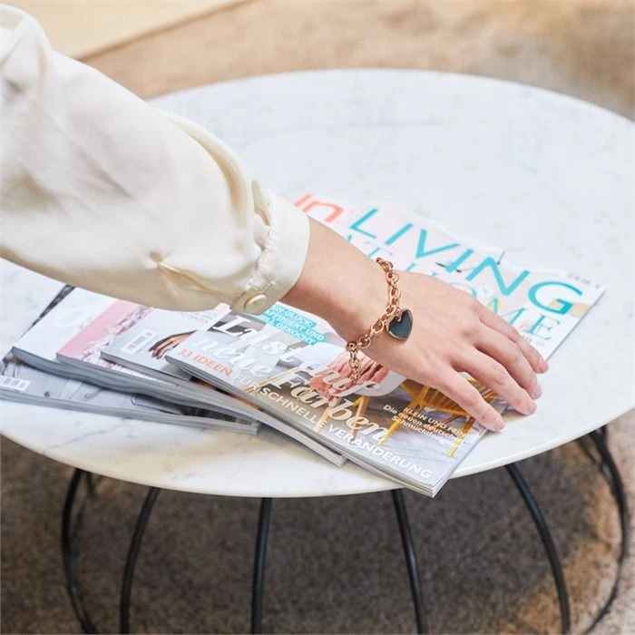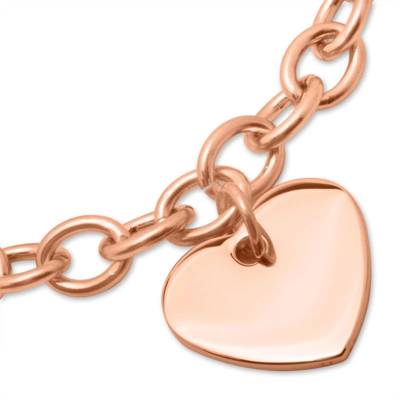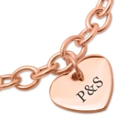 Joli bracelet en acier poli et rosĂ© avec sa breloque en forme de cĹ“ur. Le bracelet est dotĂ© d’un fermoir mousqueton pour un plus grand confort. Profitez de la première gravure diamant gratuite avec un nom, une date, ou encore un symbole. C’est parfait comme cadeau Ă offrir ou pour se faire plaisir.