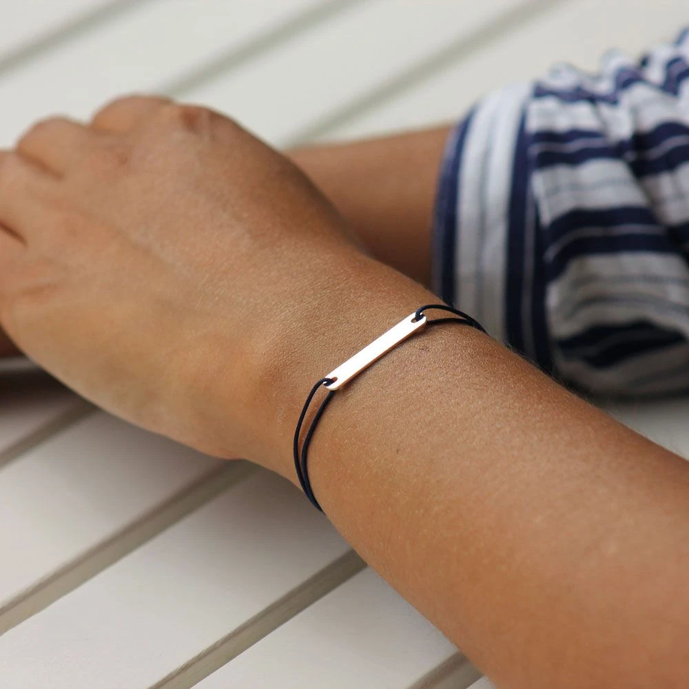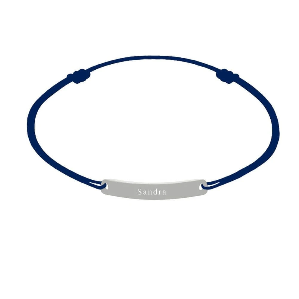 Très sympa bracelet cordon bleu pour enfant avec sa plaque de gravure en argent 925, personnalisable au recto/verso avec une gravure diamant offerte. Grâce aux deux nĹ“uds coulissants de part et d’autre de la plaque de gravure, la taille est rĂ©glable. C’est un cadeau idĂ©al pour un jeune ou un enfant.