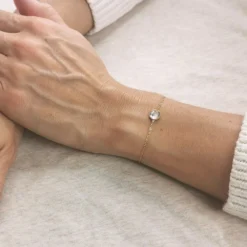 Cet Ă©lĂ©gant bracelet en acier inoxydable dorĂ© est accommodĂ© d’un vĂ©ritable cristal de Swarovski. C’est un vĂ©ritable incontournable. Sa chaĂ®ne est rĂ©glable sur 3 cm afin de convenir Ă des poignets plus ou moins fins. IndĂ©modable, faites graver quelques caractères au dos de la pierre et il deviendra intemporel.
