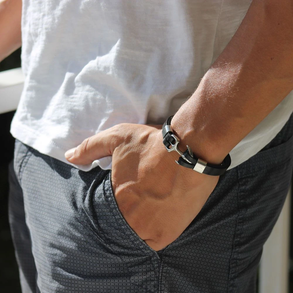 Bracelet Cuir Ancre Noir Personnalisé -1870