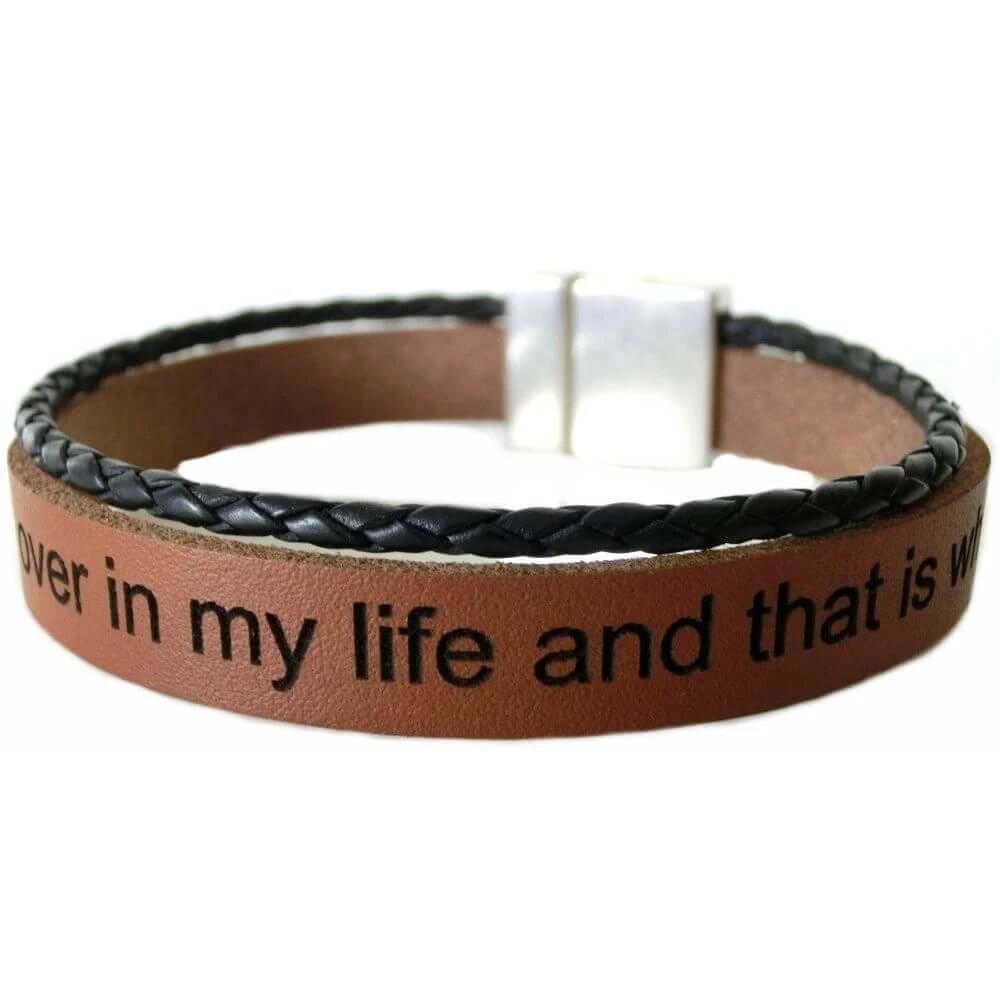 Superbe bracelet cuir camel composĂ© d’une lanière plate personnalisable et d’un brin tressĂ©. Fait sur mesure pour le plus grand bonheur des hommes et des femmes ce bracelet s’adaptera Ă tous les poignets. Une jolie fermeture magnĂ©tique le maintient solidement autour du poignet. Personnalisable avec un message doux, la gravure laser est offerte. Avec un look totalement unique il fera son effet Ă coup sĂ»r. DĂ©clarez vos mots tendres avec une longue phrase d’amour ou d’amitiĂ© par exemple, jusqu’Ă 80 caractères rĂ©alisable. C’est un cadeau unique Ă offrir pour faire plaisir. Choisissez la longueur qu’il vous faut sur mesure.
