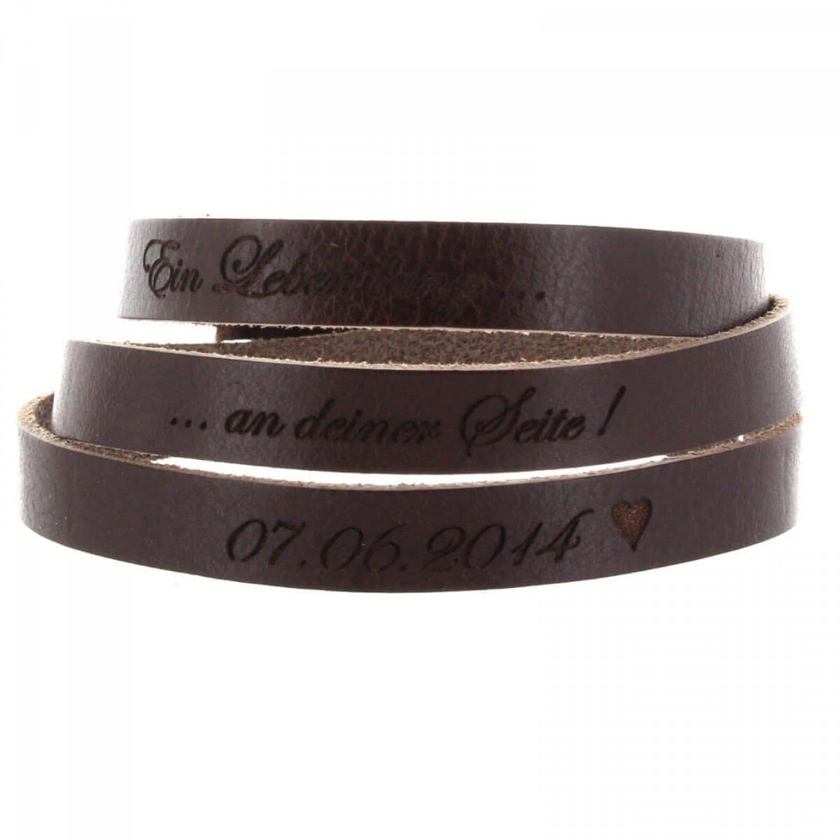 Moderne bracelet en cuir marron multirang (3 tours) personnalisable avec une gravure laser offerte. Comporte une fermeture boucle qui assure une belle sĂ©curitĂ© et permet de le rendre adaptable Ă chaque poignet. Ce bracelet cuir marron s’enroule facilement autour du poignet grâce Ă un cuir souple de très haute qualitĂ©. DĂ©clarez vos sentiments avec une longue phrase ou pensez mĂŞme Ă une jolie dĂ©claration, jusqu’Ă 250 caractères possible. C’est un cadeau unique et personnel pour les hommes et les femmes.