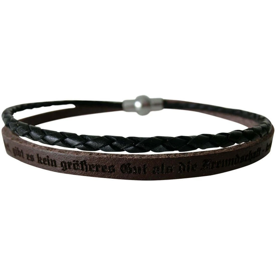 ElĂ©gant et très raffinĂ© bracelet cuir marron multirang composĂ© d’un brin tressĂ© et d’une lanière personnalisable, fait sur mesure pour le plus grand bonheur des hommes et des femmes il sĂ©duira Ă coup sĂ»r. Personnalisable avec un joli et long message tendre, la gravure laser est offerte. Une magnifique et discrète fermeture magnĂ©tique s’harmonise parfaitement avec le bracelet et le maintient solidement au poignet. Ce bracelet cuir marron fera son effet avec son cuir souple de haute qualitĂ©. DĂ©clarez vos sentiments avec une phrase d’amour ou d’amitiĂ©, jusqu’Ă 80 caractères rĂ©alisable. C’est un cadeau unique Ă offrir pour faire plaisir. Choisissez la longueur qu’il vous faut sur mesure.