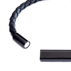 Bracelet en cuir noir de style élégant et contemporain, avec un fermoir magnétique en acier inoxydable noir qui s’adapte parfaitement à tous les poignets avec ses 3 longueurs disponibles au choix de 17, 19 et 21 cm. Ce bracelet se compose d’un unique brin entrelacé. Il se démarque par un fermoir avec les quatre faces gravables ce qui lui confère un look totalement incomparable. La première gravure diamant est offerte, c’est un magnifique cadeau à offrir pour toute occasion.