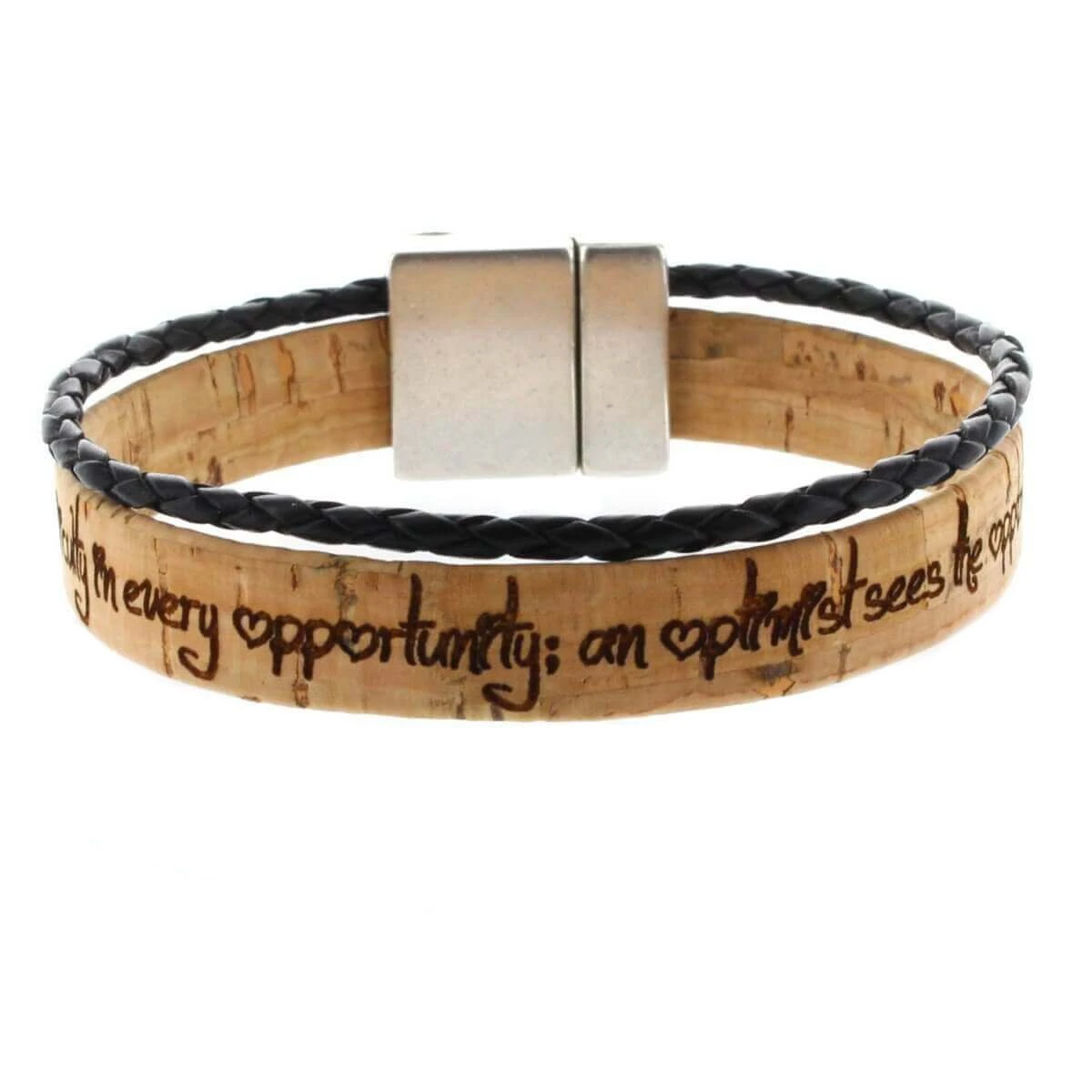Exclusif et original bracelet liège composé d’un brin cuir tressé noir et d’une lanière en liège personnalisable avec une gravure laser offerte. Sa fermeture magnétique maintient solidement le bracelet autour du poignet. Personnalisable avec un joli et long message doux et tendre ce bracelet liège fera son effet sans aucun doute. Fait sur mesure ce bracelet plaira à coup sûr aux hommes et aux femmes. Déclarez vos sentiments avec une phrase d’amour ou d’amitié, jusqu’à 80 caractères réalisable. C’est un cadeau unique à offrir pour faire plaisir. Choisissez la longueur qu’il vous faut sur mesure.