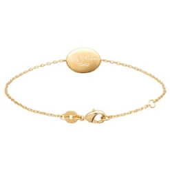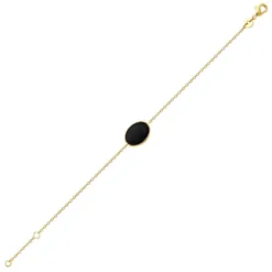 Joli bracelet plaqué or 3 microns de 18 cm avec sa pastille ovale laquée noire. Son fermoir mousqueton vous assure plus de confort et de sécurité. L’anneau intermédiaire permet d’adapter la longueur du bracelet. Profitez de la première gravure diamant offerte pour personnaliser le verso avec un symbole, un nom ou encore une date. C’est parfait comme cadeau à offrir ou pour se faire plaisir tout simplement. Un collier assorti vendu séparément complètera votre parure.