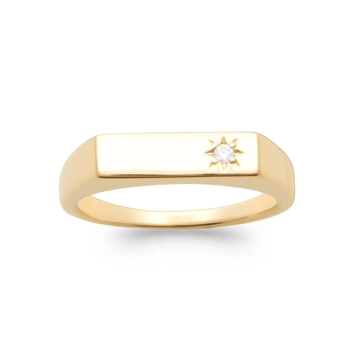 Cette chevalière fine est un bijou chic et tendance qui habille votre doigt avec classe. Sur le dessus, un oxyde de zirconium apporte une touche d’éclat. En plaqué or 750 millièmes 3 microns, cette chevalière est un accessoire incontournable pour compléter votre tenue. Ajoutez une gravure pour la rendre unique.