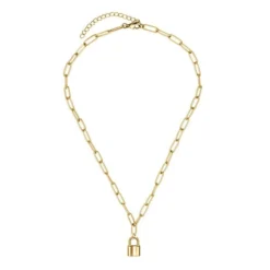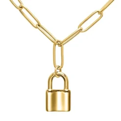 Joli collier avec son pendentif cadenas et sa maille rectangle en acier doré. Le cadenas est un symbole fort de longévité dans les unions. Le collier possède un fermoir mousqueton pour un plus grand confort et plus de sécurité. Profitez de la première gravure diamant offerte avec un nom, des initiales ou encore un symbole. Une extension intégrée à la chaîne du collier permet d’adapter la longueur d’environ 5 cm. C’est parfait comme cadeau à offrir à sa moitié ou pour se faire plaisir tout simplement.