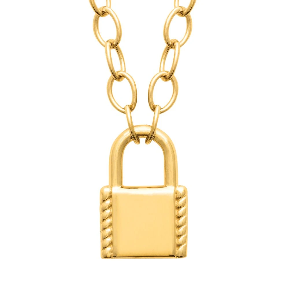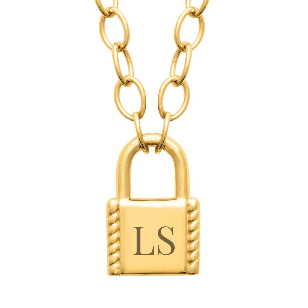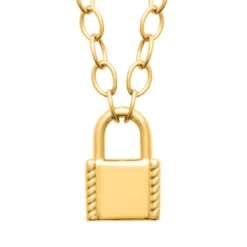 Joli collier de 45 cm en plaqué or 3 microns avec son cadenas aux bords délicatement ciselés. Le cadenas est un symbole fort de longévité dans les unions. Profitez de la première gravure diamant offerte avec un nom, des initiales ou encore un symbole. C’est parfait comme cadeau à offrir à sa moitié ou pour se faire plaisir tout simplement. Un bracelet assorti vendu séparément complètera votre parure.