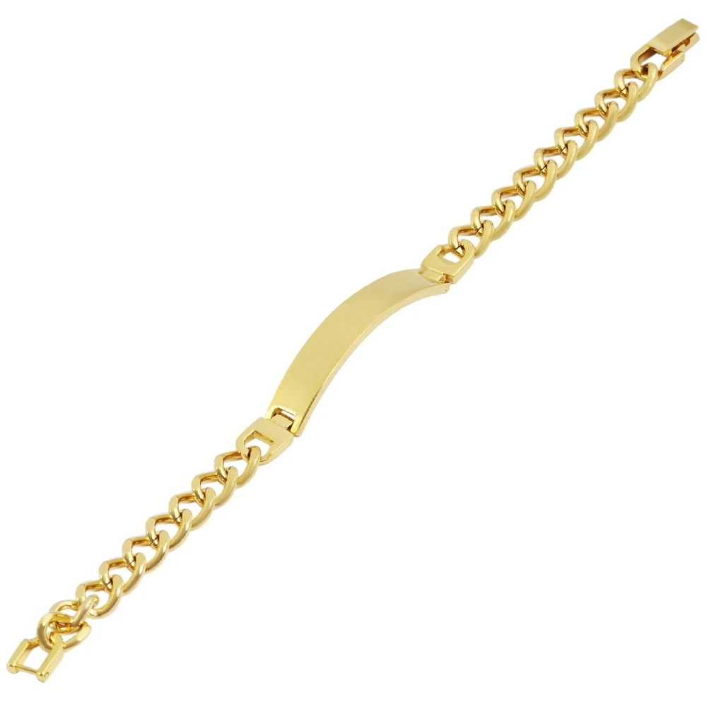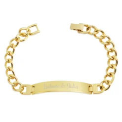 Elégante gourmette en acier dorée, d’une longueur de 19 ou 21 cm. Elle est gravable au recto et au verso et une gravure diamant est offerte. Son fermoir clip assure une bonne sécurité. C’est un joli cadeau à offrir pour un être cher.