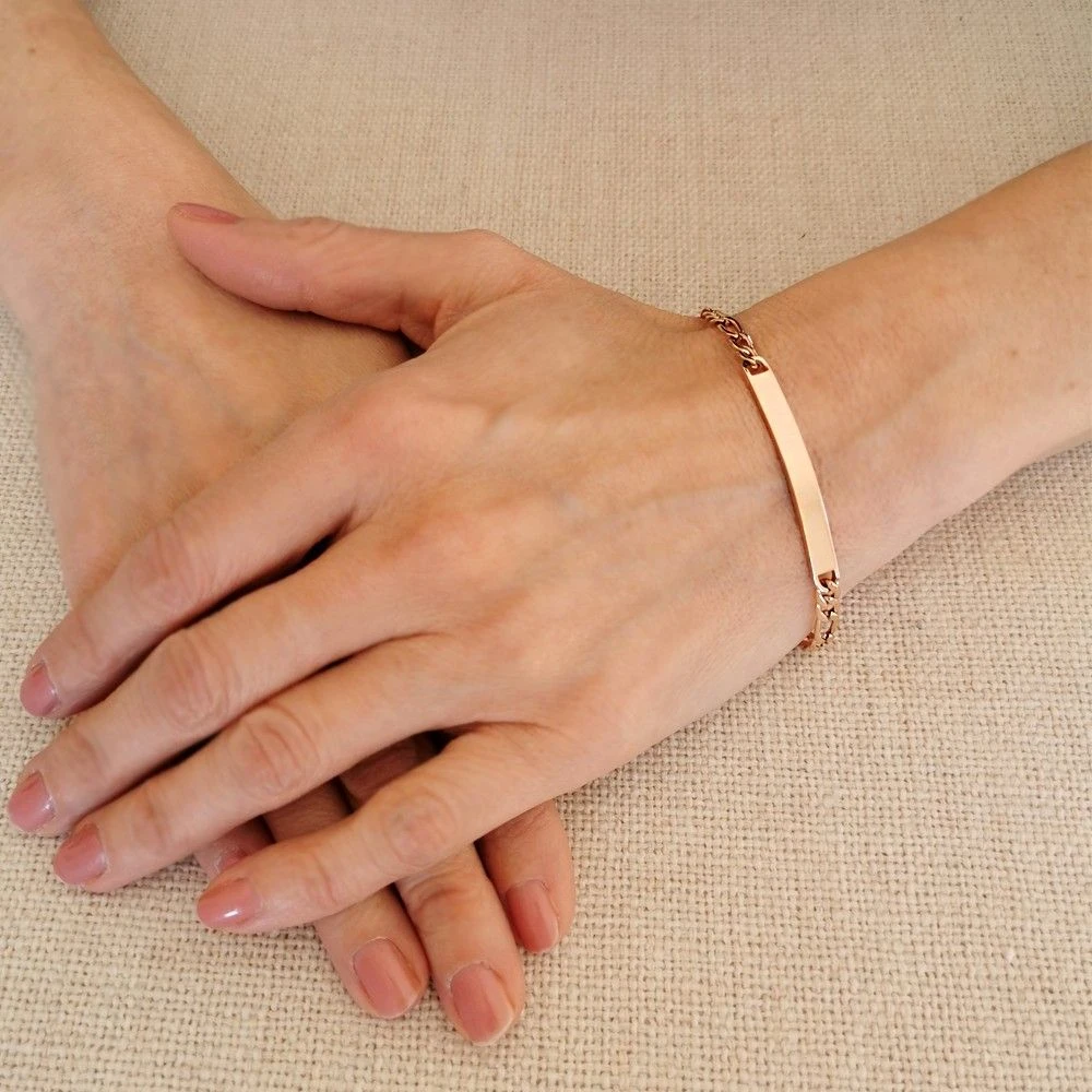 Légère et élégante avec sa maille figaro de couleur rosé, elle ne peut que vous séduire. Laissez-vous tenter, nous vous offrons la première gravure diamant. La gourmette est un bijou indémodable et un incontournable de sa boîte à bijoux. C’est un cadeau idéal pour la fête des mères ou pour un anniversaire.