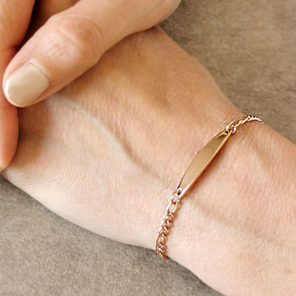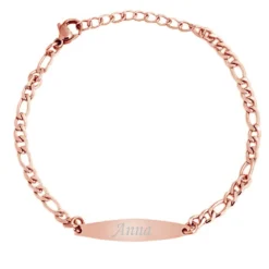 Cette gourmette en acier rosée est un bijou discret et élégant, qui s’adapte à tous les styles grâce à sa maille figaro intemporelle. Elle est ajustable entre 15 et 18 cm avec sa chaine d’extension de 3 cm. Cette gourmette convient aux femmes qui ont un poignet fin ou aux jeunes filles. Elle est personnalisable notamment avec une gravure diamant offerte.