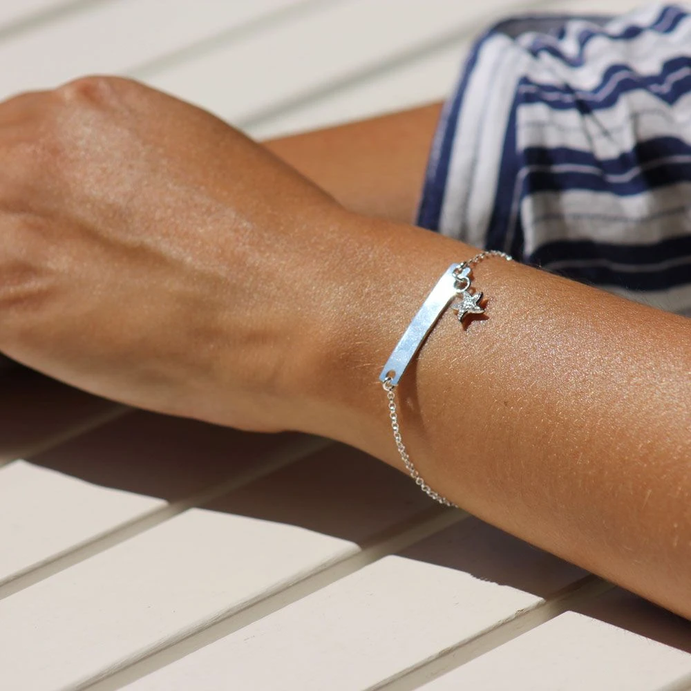 Très jolie gourmette en argent massif 925 agrémentée d’une étoile breloque. Personnalisable au recto/verso avec une gravure diamant ou laser au choix. Très pratique, cette gourmette est réglable en longueur grâce à ses anneaux d’attache supplémentaire s’adaptant à tous les poignets féminins. Les femmes adorent peaufiner leur look et porter une gourmette gravée, surtout si elle est unique.