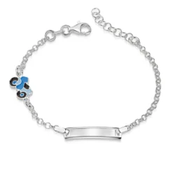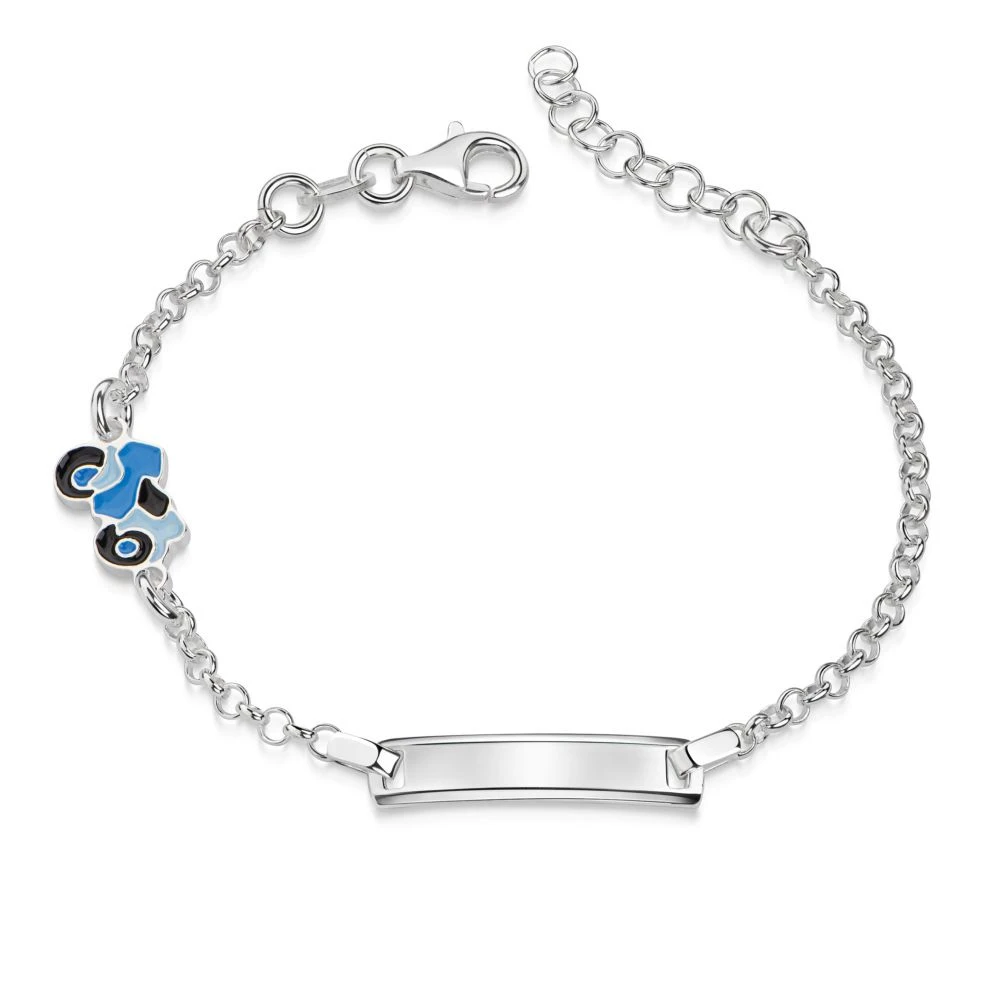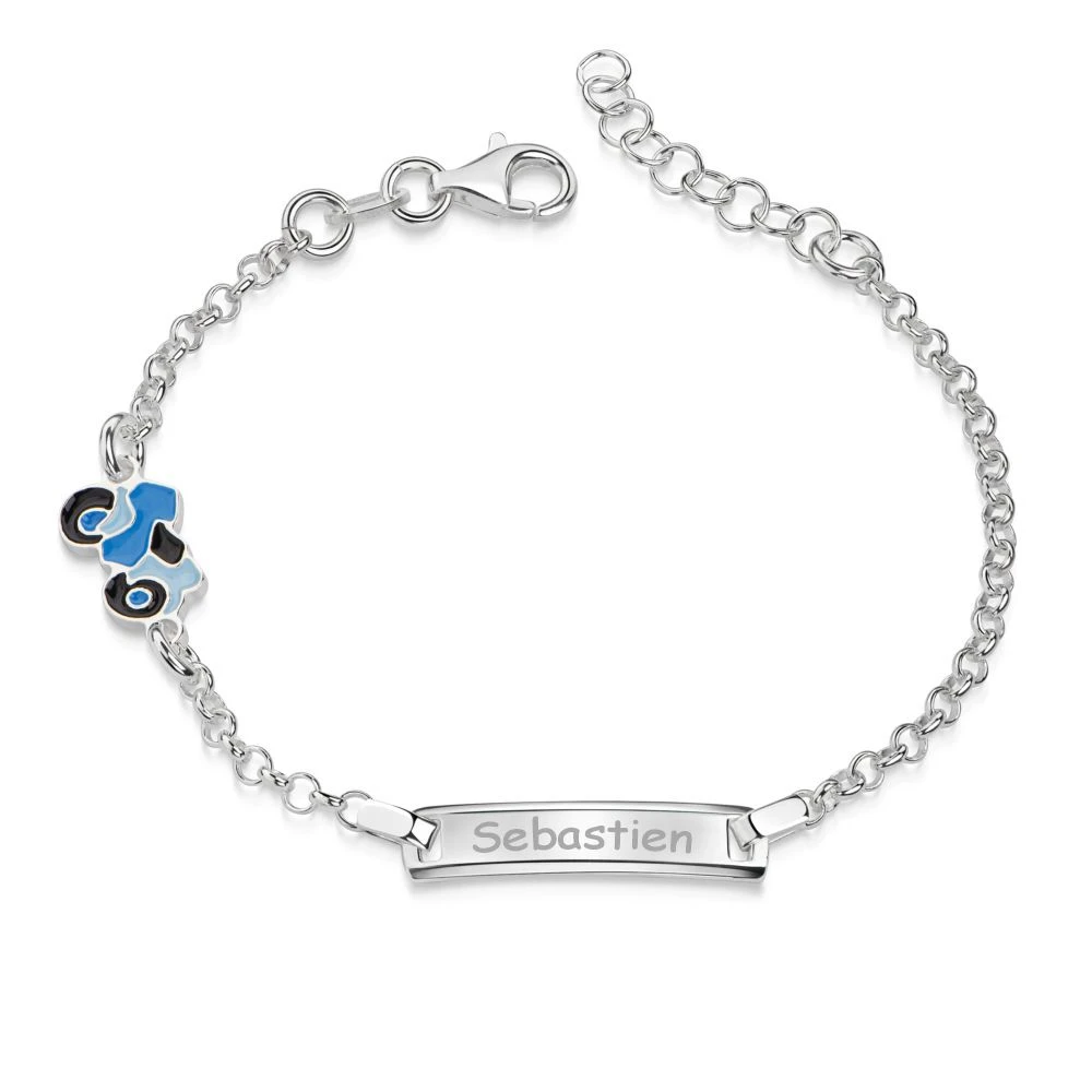 Faites plaisir Ă un petit garçon en offrant cette gourmette en argent ornĂ©e d’une mignonne petite moto bleue en Ă©mail. L’extension de sa chaĂ®ne permettra d’en profiter sur plusieurs annĂ©es! Personnalisez ce bijou en gravant sur la plaque rectangulaire un prĂ©nom, une date de naissance ou encore un symbole. La première gravure diamant est offerte. C’est le cadeau parfait pour un anniversaire, un baptĂŞme ou une communion.