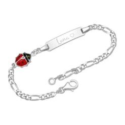 ElĂ©gante gourmette en argent massif 925 poli agrĂ©mentĂ©e d’une petite coccinelle porte-bonheur intĂ©grĂ©e Ă la maille figaro. Elle est dotĂ©e d’un fermoir Ă mousqueton classique pour un plus grand confort. La première gravure diamant est offerte. C’est parfait comme cadeau Ă offrir ou pour se faire plaisir. Plusieurs longueurs sont proposĂ©es.