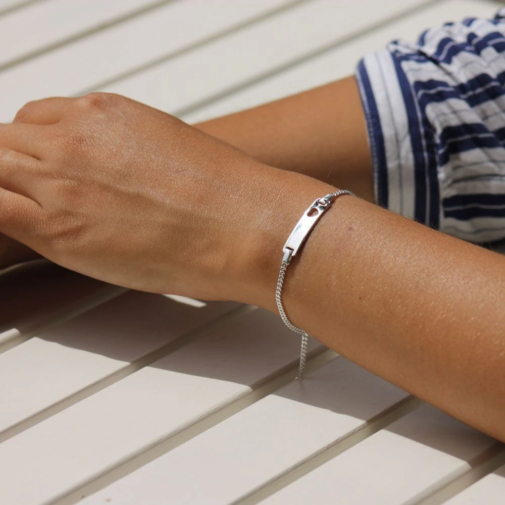 Magnifique gourmette argent au motif cĹ“ur sur la plaque de gravure. Elle offre un bel aspect brillant de part son polissage. Elle est personnalisable au recto et au verso avec une première gravure offerte. C’est un joli cadeau pour une femme d’exception.