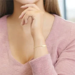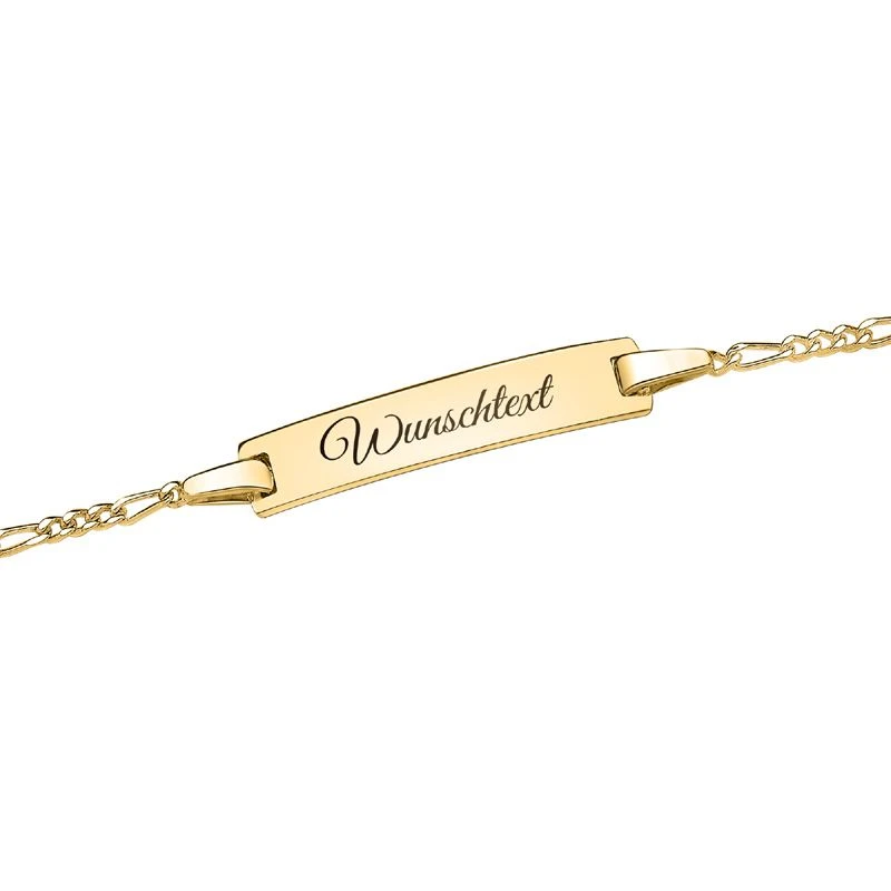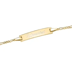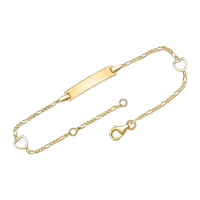 Magnifique gourmette, en argent 925 de couleur dorĂ©e, avec une plaque rectangulaire et agrĂ©mentĂ©e de deux petits cĹ“urs sur la chaine figaro du bracelet. Le bracelet se ferme Ă l’aide d’un mousqueton classique et est disponible en diffĂ©rentes longueurs. L’anneau intermĂ©diaire permet de raccourcir la longueur du bracelet d’environ 2-3 cm. Profitez de la première gravure diamant gratuite avec un nom, une date, ou encore un symbole. C’est parfait comme cadeau Ă offrir ou pour se faire plaisir.