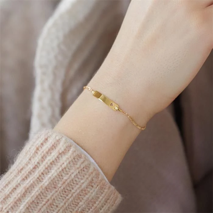 ElĂ©gante gourmette en or jaune 375 en maille figaro avec sa plaque rectangulaire ajourĂ©e d’un petit coeur et son fermoir mousqueton pour un plus grand confort. Le bracelet en or est disponible en diffĂ©rentes longueurs. L’anneau intermĂ©diaire permet de raccourcir la longueur du bracelet d’environ 2-3 cm. Profitez de la première gravure diamant gratuite avec un nom, une date, ou encore un symbole. C’est parfait comme cadeau Ă offrir ou pour se faire plaisir.