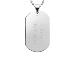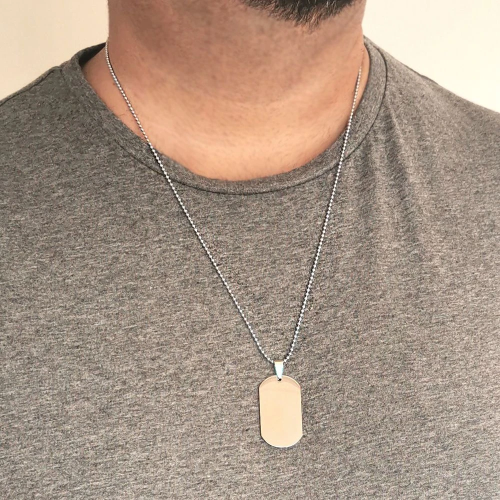 Pendentif dogtag en acier inoxydable de haute qualitĂ© personnalisable au recto et au verso avec une gravure diamant offerte. PossibilitĂ© de graver horizontalement et verticalement. C’est un cadeau idĂ©al Ă offrir pour un homme d’exception.