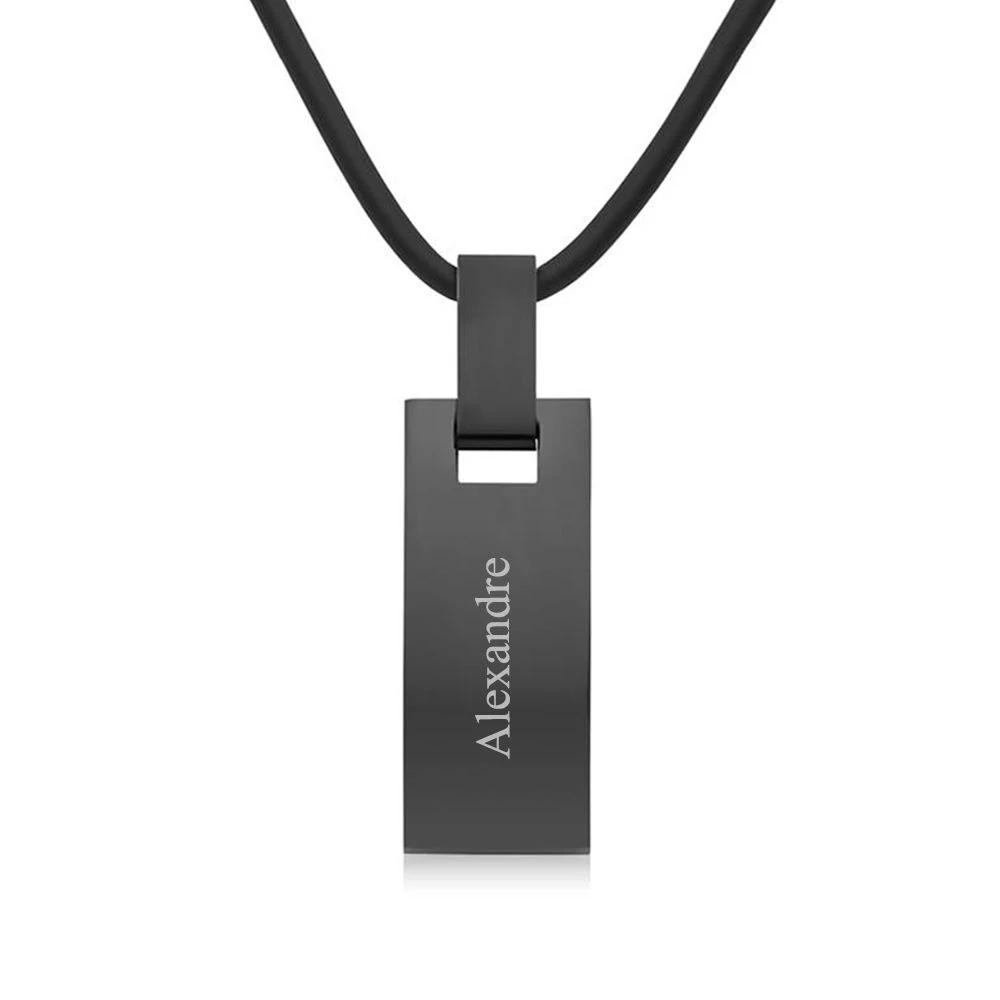 Le pendentif Dog Tag est en acier inoxydable avec une surface noircie par un procĂ©dĂ© de placage ionique. Il peut ĂŞtre gravĂ© Ă l’avant ou Ă l’arrière. La gravure diamant sur un cĂ´tĂ© est dĂ©jĂ incluse dans le prix. DiffĂ©rentes chaĂ®nes peuvent ĂŞtre commandĂ©es pour ĂŞtre assorties au pendentif. La gravure personnelle fait de ce pendentif un cadeau unique pour la fĂŞte des pères, la Saint-Valentin ou un anniversaire.