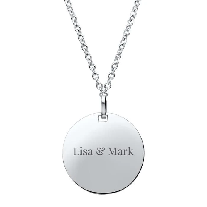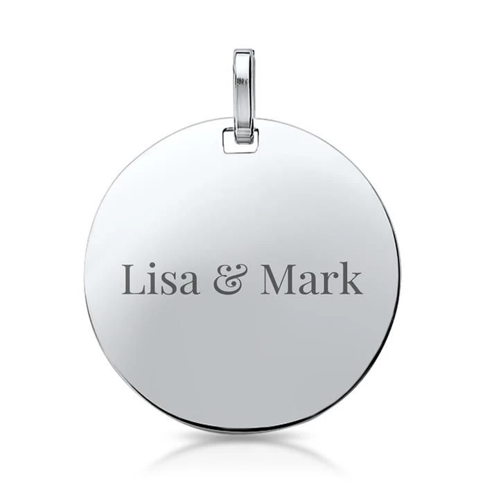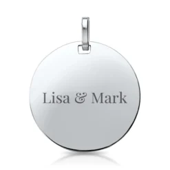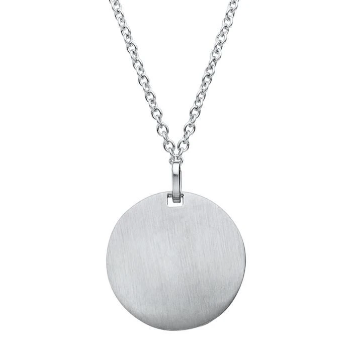 Moderne pendentif rond en acier inoxydable: le recto est poli et le verso est mat. Une chaine assortie est disponible en option. Une gravure est offerte.