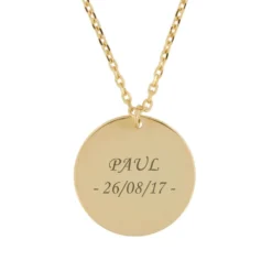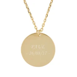 Jolie médaille en plaqué or polie personnalisable au recto/verso, sur laquelle se superpose un superbe pendentif arbre de vie. Le symbole de l’Arbre de Vie représente différentes vertus et qualités comme la protection, la sagesse, la force, l’évolution, le renouveau et la rédemption. Ce joli combiné de pendentifs s’accompagne d’une chaîne 45 cm assortie. Très féminin et original vous apprécierez le porter tout au long de la journée, comme il fera son effet lors d’une soirée plus mondaine. Vous pourrez offrir ce joli cadeau personnalisé à une femme qui vous tient à coeur.