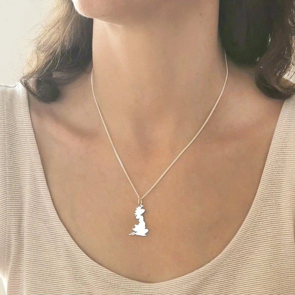 Magnifique et intemporel pendentif en argent 925 en forme de carte, ici sous la forme de l’Angleterre, une belle destination touristique qui vaut toujours une visite. Les pendentifs argent massif sont rĂ©alisĂ©s dans la tradition de notre atelier allemand, ce qui garantit un travail de haute qualitĂ©. En plus d’ĂŞtre un merveilleux bijou, il est complètement original car vous pourrez y placer, Ă l’endroit de votre ville prĂ©fĂ©rĂ©e, un symbole de votre choix ! PossibilitĂ© de combiner ce pendentif avec une chaĂ®ne en argent optionnelle. C’est un bijou personnalisĂ© rĂŞvĂ© pour les hommes et les femmes attachĂ©s Ă leur pays ou tout simplement pour les grands voyageurs. Si vous ne trouvez pas votre pays dĂ©sirĂ© sur notre boutique, veuillez nous contacter, nous avons tous les pays Ă disposition.