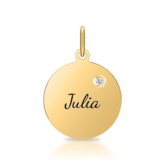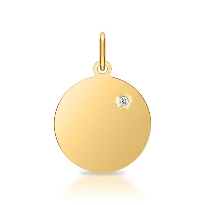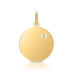 Très élégant pendentif rond argent doré inoxydable agrémenté d’un diamant pour encore plus de féminité. Personnalisable au recto/verso, ce pendentif s’adapte à toutes les tenues et pour toutes les occasions. Une chaîne argent dorée en option peut accompagner ce bijou pour une parure complète. Faites lui plaisir avec ce pendentif précieux, votre femme ne vous regardera plus de la même façon.