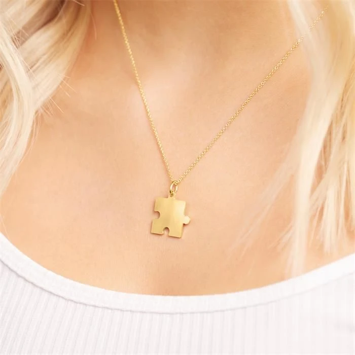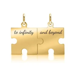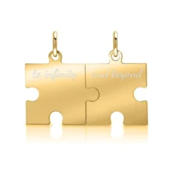 Modernes pendentifs puzzle en argent 925 plaquage or 1 micron. Une chaine assortie est disponible en option. Une gravure est offerte pour chacun des pendentifs.