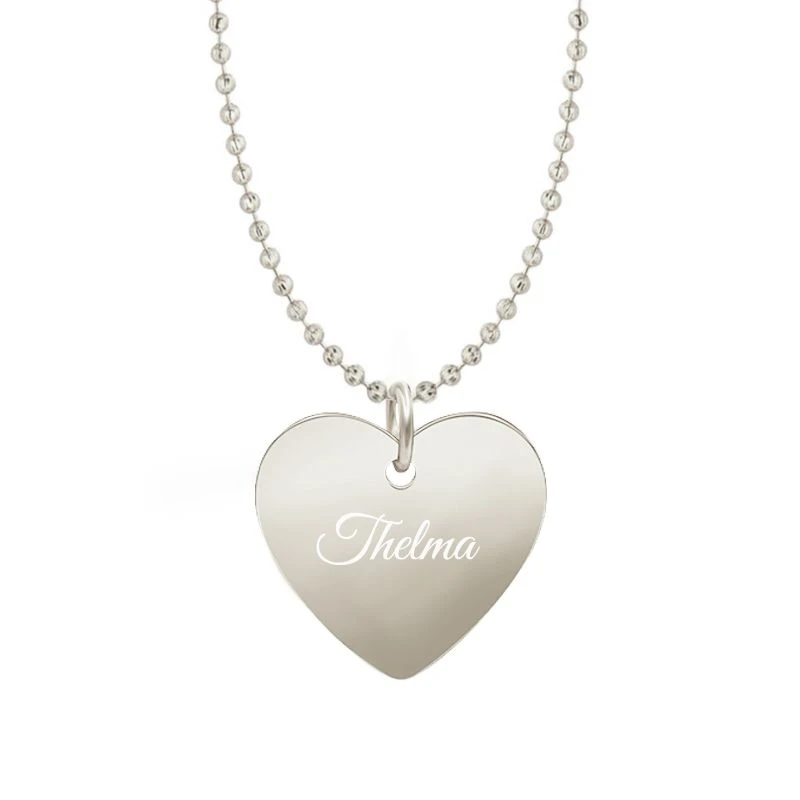 Très joli pendentif cœur en acier inoxydable accompagné d’une chaîne en cuir, caoutchouc, acier… en option. Ce pendentif est personnalisable au recto et au verso sur deux lignes avec une première gravure diamant offerte. C’est un cadeau très précieux pour une femme, il plaira sans aucun doute. Faites graver un mot d’amour ou un message fort.